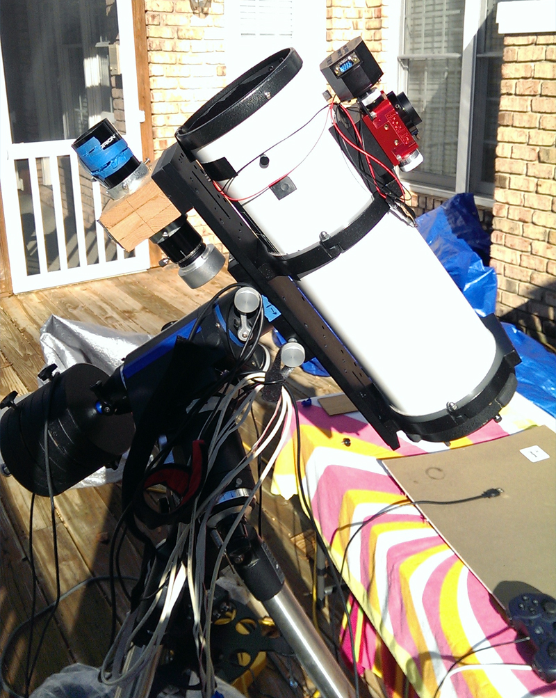 Little Newt in new Parallax rings on a massive 21 inch ADM plate. Guider mounted in front under plate. Balance in DEC is perfect.