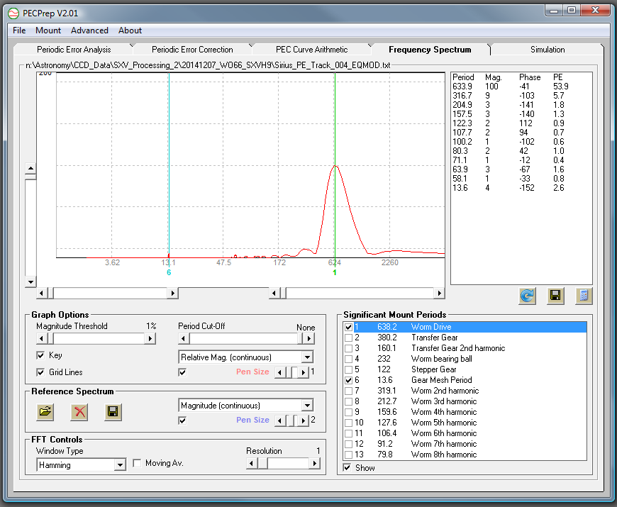 Orion Sirius PE before belt mod. Note the 13.6 second period has a PE of 2.6. After belt mod this dropped to 0.6.