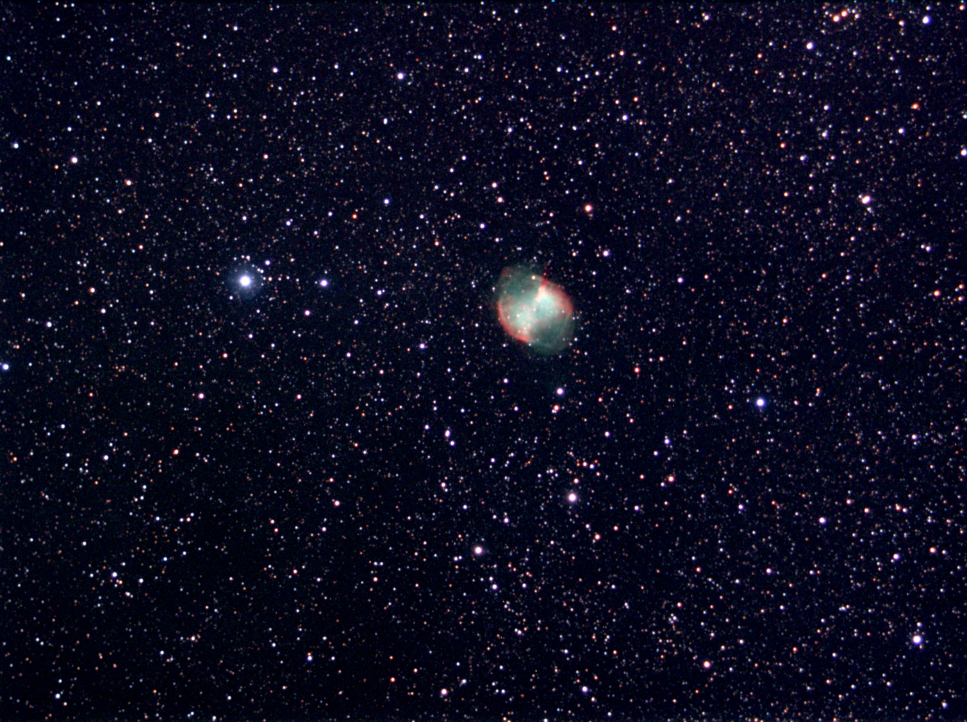 (Click to enlarge) This image © Copyright 2018, Michael Fulbright Data reduction done with AstroArt 3.0. Final color/histogram adjustments done with Photoshop 7. Date: 7/27/2003 Telescope: Tak Sky 90 + field flattener (400mm) Mount: Vixen GP/DX Camera: SXV-H9 Exposure: RGB: 12:12:18 minutes unbinned